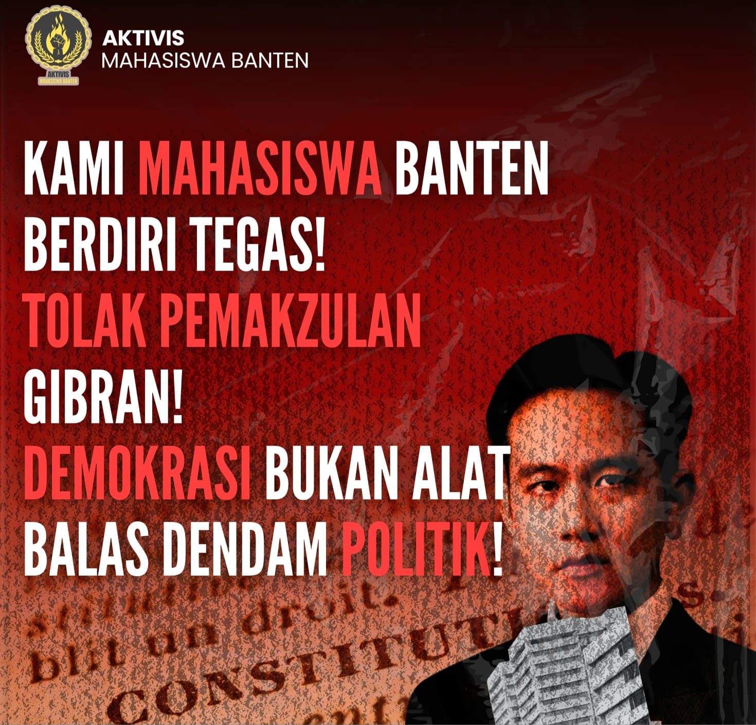 1. Kami mahasiswa Banten berdiri tegas tolak pemakzulan Gibran, Demokrasi bukan alat Balas dendam politik !.