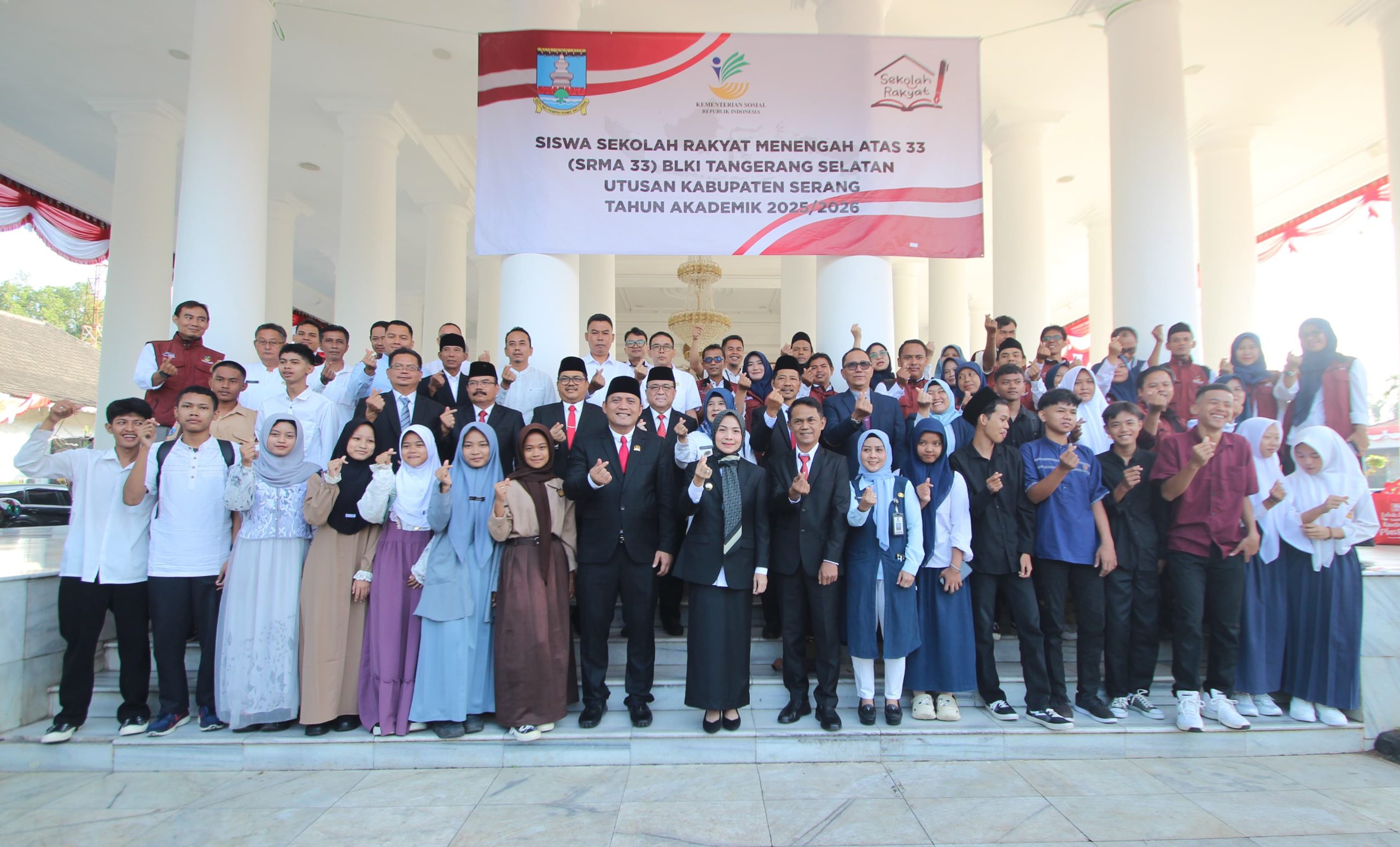 SERANG – Bupati Serang Ratu Rachmatuzakiyah melepas secara resmi keberangkatan 19 pelajar asal Kabupaten Serang yang akan melanjutkan ke Sekolah Rakyat Menengah Atas (SRMA) 33 Tangerang Selatan Tahun Ajaran 2025/2026 di Pendopo, Jumat 15 Agustus 2025.