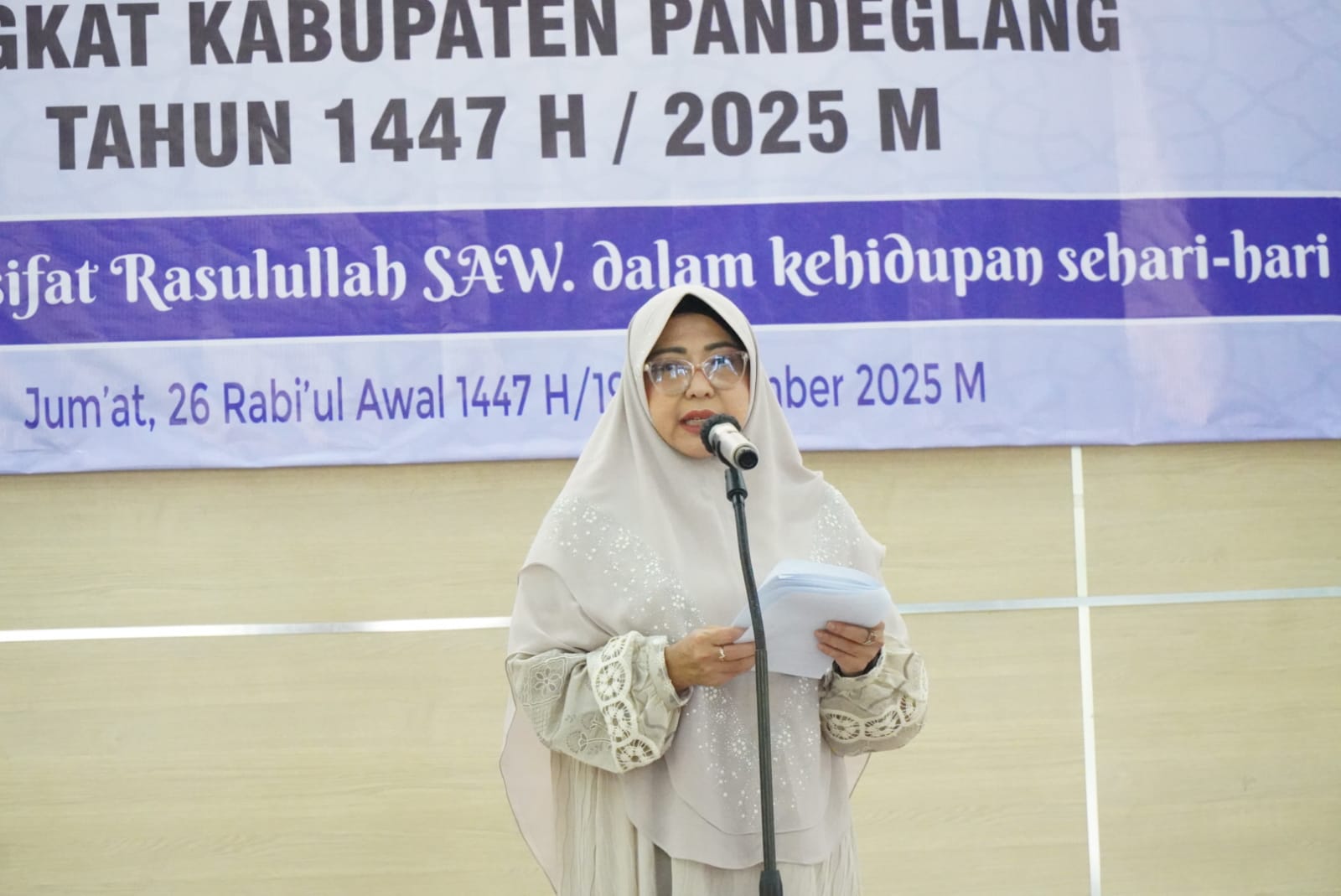 Pandeglang – Peringatan Maulid Nabi Muhammad SAW 1447 Hijriah tingkat Kabupaten Pandeglang berlangsung khidmat di Gedung Pendopo Pandeglang, Jumat (19/9/2025).