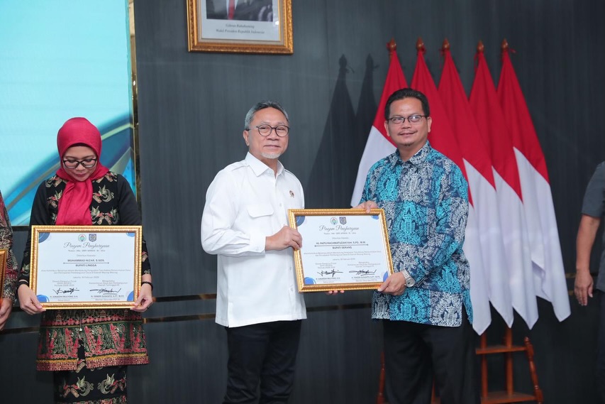 Penyerahan penghargaan dalam rangkaian Pelantikan dan Rapat Kerja Nasional (Rakernas) DPP APDESI Periode 2026–2031 yang digelar di Auditorium Kementerian Desa dan Pembangunan Daerah Tertinggal Republik Indonesia, Jakarta pada Senin, 16 Februari 2026.