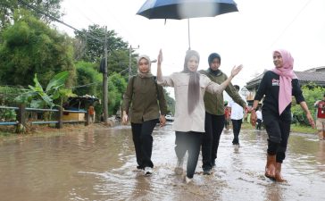SERANG, - Bupati Serang Ratu Rachmatuzakiyah meninjau lokasi banjir di Kampung Mekarsari, Desa Margasari, Kecamatan Pulo Ampel, akibat tingginya curah...